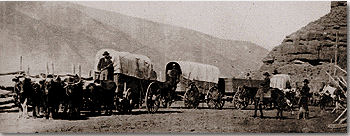 The first documented emigrants to cross into the western states travelled to Oregon in 1839. The following year mountain men Joe Meek and Bob Newell made the journey over the Blue Mountains by wagon. Next spring the first wagon train assembled at Independence, Missouri and set off on May 10 1841, led by John Bidwell and John Bartelson. Their thirteen wagons, drawn by horses, mules or oxen, were accompanied by a group of missionaries led by Father Pierre Jean de Smet, who were mounted and whose supplies were carried by five mule drawn carts. The missionaries had journeyed from St Louis late in April, and were guided by Thomas ‘Broken Hand’ Fitzpatrick, who, like many of his counterparts such as Jim Beckwourth and Jim Bridger, turned his hand to acting as a guide when trapping beavers was no longer a viable business. (see Broken Hand , Leroy R Hafen, Chapter 9) "It was well we did (wait for Fitzpatrick) “. wrote Bidwell,” for otherwise probably not one of us would ever have reached California, because of our inexperience".